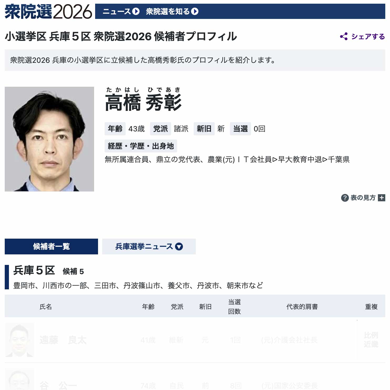 読売新聞オンラインに掲載されました。 2026 1/27 読売新聞オンラインに掲載されました。>掲載ページはこちら 最新情報 よかったらシェアしてね! URLをコピーしました! URLをコピーしました! 兵庫5区衆院選に出馬します 選挙ドットコムにコメントを掲載していただいています。 この記事を書いた人 watanabeken 関連記事 第一声の様子をご覧ください。 January 27, 2026 選挙ドットコムにコメントを掲載していただいています。 January 27, 2026 兵庫5区衆院選に出馬します January 27, 2026 サンテレビに取り上げられました May 15, 2025 神戸新聞ウエブ版(神戸新聞NEXT)に掲載されました May 15, 2025 朝日新聞ウエブ版に掲載されました May 15, 2025 5月17日(土)無所属連合 決起集会を開催します。 April 22, 2025 4月28日(月)13:00~無所属連合 初公式イベントを開催します April 22, 2025